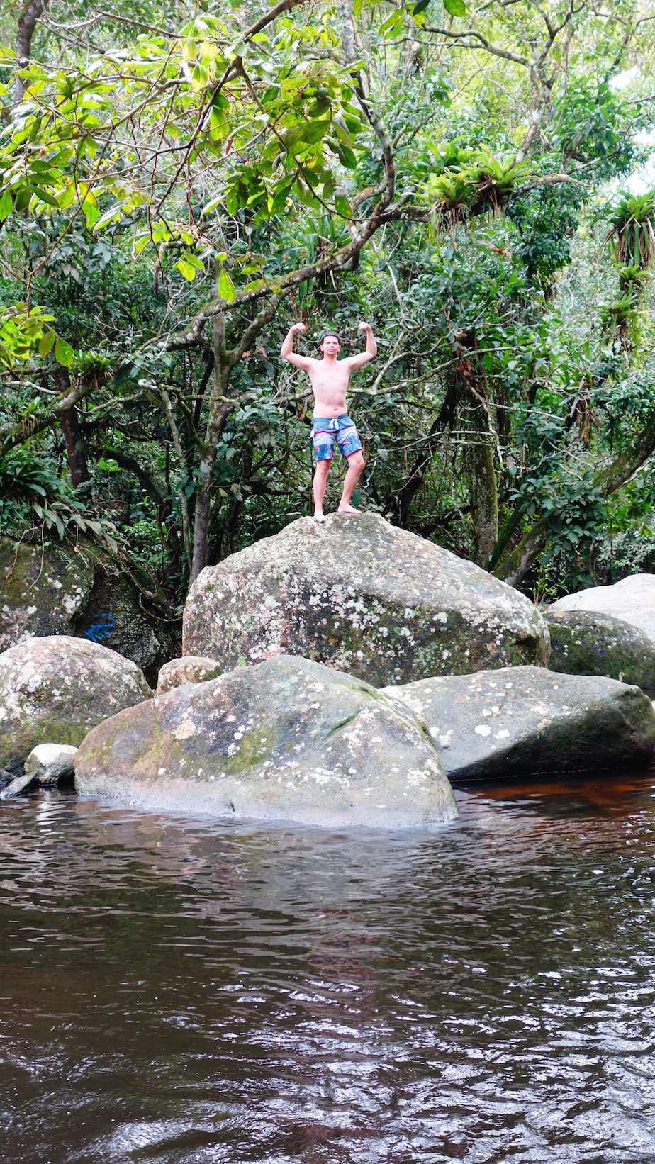 A Ilha Grande, le temps semble ralentir. On marche plus lentement. On vaque, on traine, on observe, on se balade… à la cool Man. Peu de choses à visiter, donc pas de pression. Nous, on a vite trouvé notre rythme ici. Plage, piscine naturelle, balade… et même crêperie où notre dîner d’hier soir a pris des allures de soirée bretonne : polaire, pluie battante, crêpe complète (délicieuse par ailleurs) et discussion avec le patron, un français qui a eu l’air de nous prendre pour des fous lorsqu’on lui a expliqué notre périple. Heureusement, les moustiques sont là pour nous rappeler que non, nous ne sommes pas à la Pointe du Raz. Bref, la météo n’a pas forcément été très clémente mais j’entends déjà vos revendications : ça va, c’est vrai, on est sur une île sublime. Mais bon, un peu de soleil en plus, ça nous aurait plu. Les maillots et les serviettes ont du mal à sécher mais ça, c’est aussi dû à l’humidité ambiante.