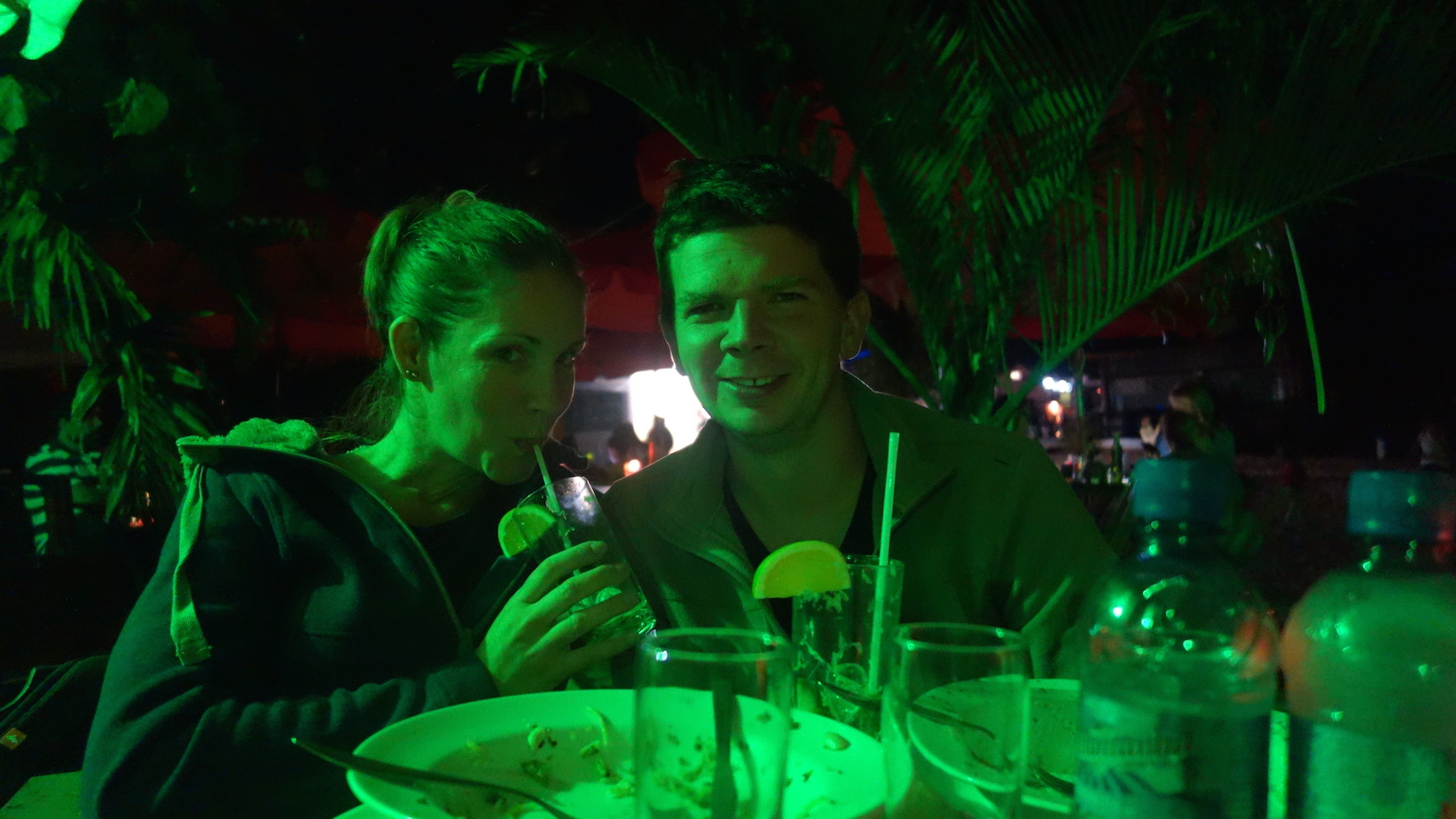 Pour nos repas, c’est un peu… comment dire… un peu le bazar. On n’arrive pas à comprendre leur fonctionnement. On demande 2 poissons panés-frites (vus sur la carte, hein, on ne s’enflamme pas !) et on se retrouve avec un plat de 7 gros poissons (même un avec des écailles et tout) vaguement panés. On commande des tapas pour deux, histoire de grignoter pendant la dégustation de notre première Caipirinha, et bim : une assiette de viande osseuse frite, remplie à dos d’âne. Bref, on prend nos marques. On a encore du travail… On a goûté la Feijoada -sans y mettre les quartiers d’orange, faut pas déconner non plus- et c’était bon. Il faut dire qu’il faisait un bon 18 dehors, nous étions tous en tenue été, sur les conseils de mon cher mari (« Meuh oui ! Il fait bon dehors ! » NDLR : ne pas se fier aux tongs des Cariocas qui ne sont pas un indice de climat) alors on avait envie d’une tartiflette du coin : Feijoada. Et ben c’est bon. Et ça réchauffe 🙂